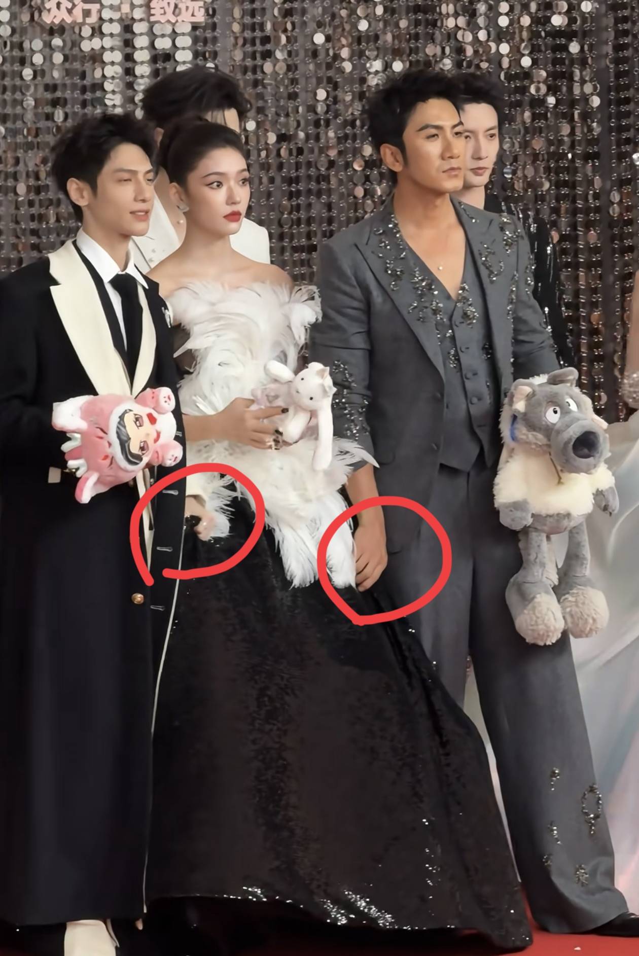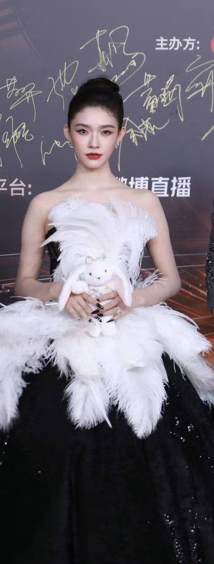 首先,林允的表现令人堪忧。作为以红毯造型闻名的女明星之一,这次她的造型实在难以理解。她身穿一袭黑色蓬蓬裙,虽然搭配了白色羽毛作为装饰,却完全无法彰显她应有的灵动与活力,反倒显得沉闷死气。她每次移动都需要旁边的两位男星帮助拎着裙角,场面显得颇为滑稽。拍照时,站在她两旁的男明星也小心翼翼地紧握着裙摆,生怕她失去平衡。除此之外,发型也是老气横秋的丸子头,再加上一款黑色指甲,整体造型平淡无奇,甚至显得有些过时。